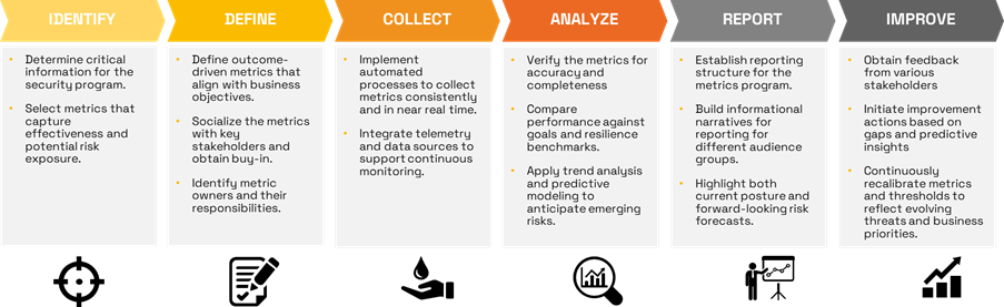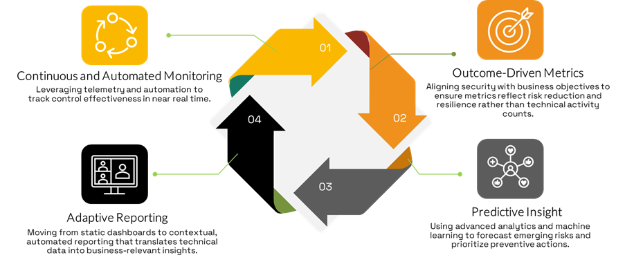 This model aligns with international standards such as ISO/IEC 27004 and NIST SP 800-55 Revision 2, emphasizing that measurement is an ongoing process linking evidence to action. By adopting a dynamic and predictive approach, organizations move beyond compliance-driven reporting to a proactive framework that strengthens resilience and supports strategic decision-making.